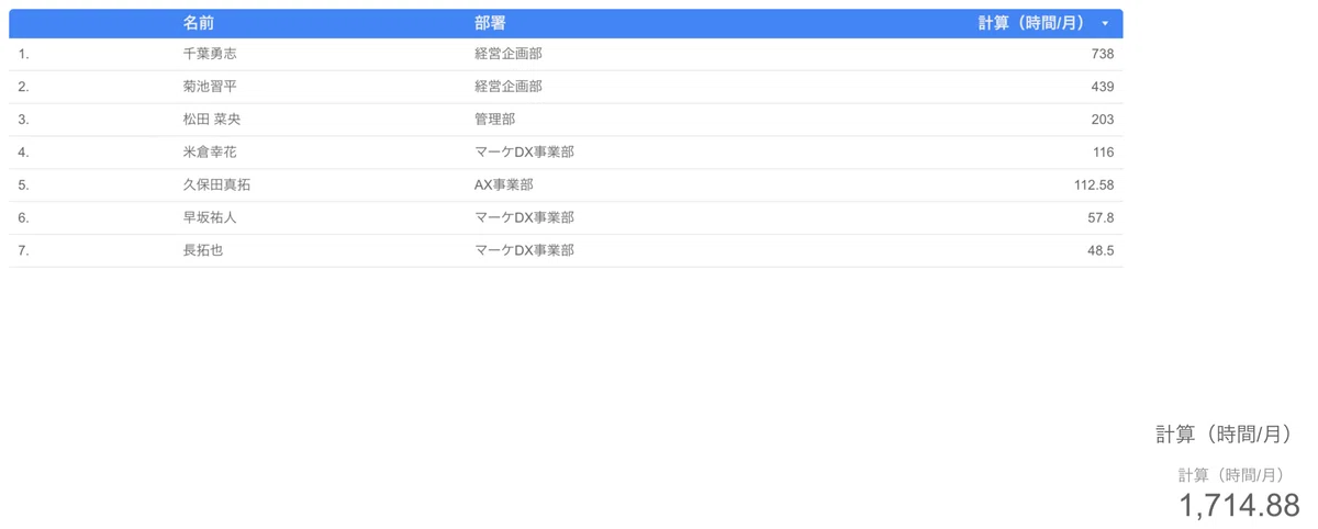 だからこそ、口だけでなく実際に成果を出すことにこだわる。その本気度が、メンバー全員の挑戦する姿勢を後押しし、1,714時間という数字につながっているのです。